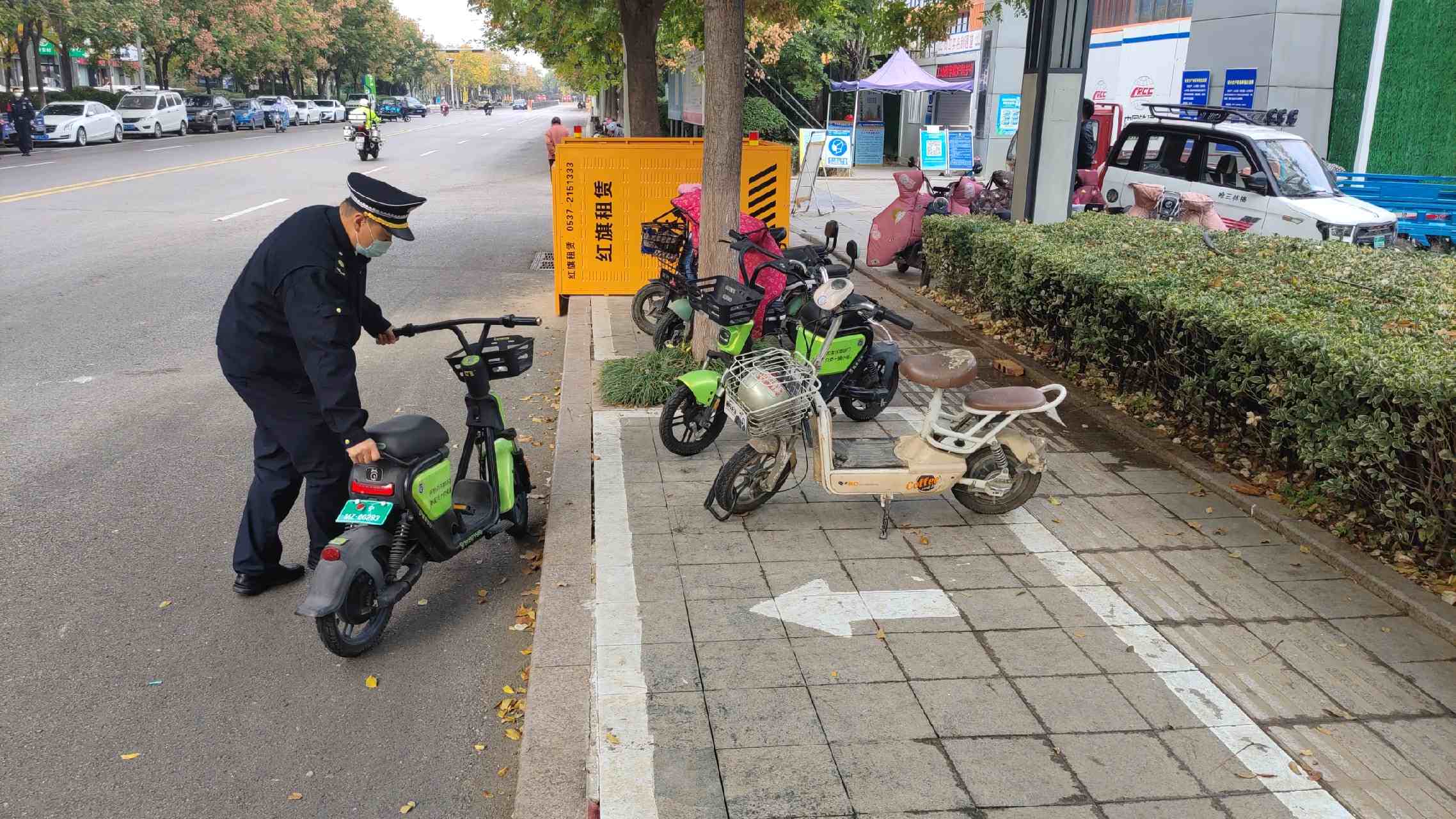十月以来,太白湖新区城市管理综合执法三大队在日常巡查管理中发现,奥体路南风花园、星城广场附近总会有某品牌共享电单车随意停放在非机动及机动车道上造成拥堵尚有较大安全隐患。该运营企业存在未引导使用人规范停车、未对投放管理区域内无序停放的共享单车进行有序管理等违法行为,执法人员现场取证后联系到了该运营企业的负责人。