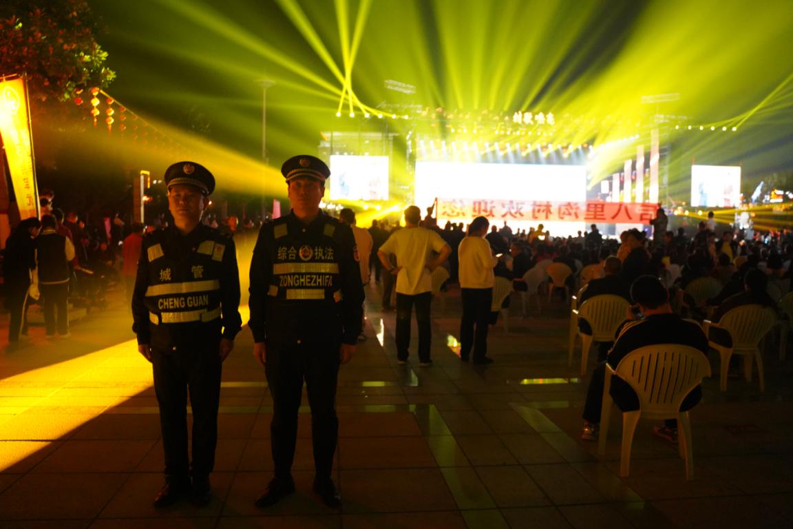 10月12日晚,2023山东省村歌故事暨全省新乡村歌曲颁奖晚会在后八里沟社区鑫琦广场拉开帷幕,邹城市综合行政执法局钢山中队为晚会精排保障方案,划分责任区域,明确责任分工,全力以赴保障晚会期间周边市容秩序整洁有序。