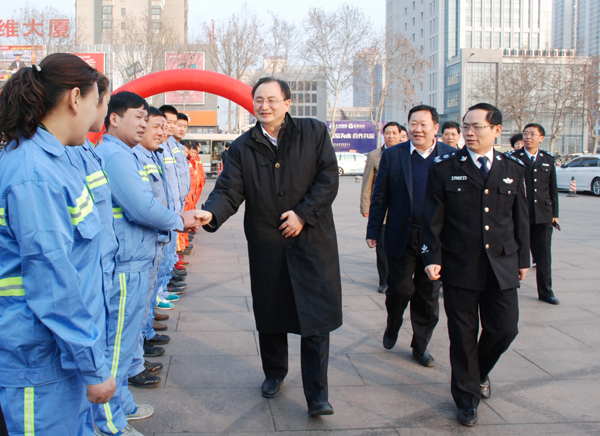 2月4日下午,市委副书记、代市长傅明先在市体育馆走访慰问一线环卫工人,代表市委、市政府向所有奋战在环卫战线上的干部职工致以亲切问候和新春祝福。市领导的慰问,给环卫干部职工带来了极大的鼓舞,大家纷纷表示,要把市领导的关怀化为动力,继续发扬无私奉献精神,加倍努力工作,让市民在干净、整洁的市容环境中欢度新春佳节。(孙静)