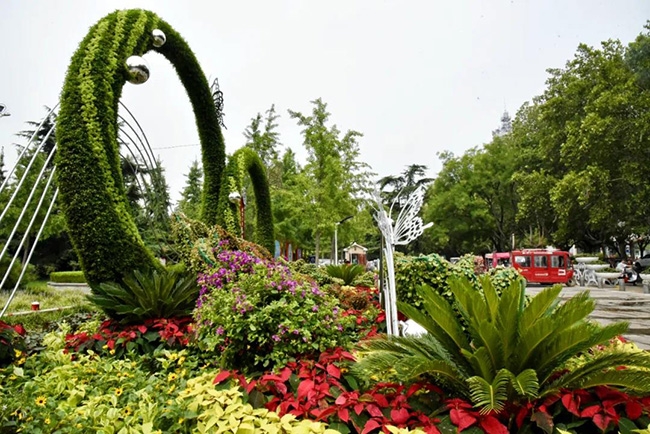 按照一路一景、打造街心花园的工作思路,对红星路、共青团路实施花卉景观打造,通过制作立体绿雕造型、摆放花架花箱组合、增设沿街绿地花境等布置方式,栽植新优时令花卉和观叶地被植物,打破传统简单的摆放形式,与周边环境和文化内涵深度融合,打造层次分明、色彩丰富、鲜花烂漫、生态自然的道路绿化景观,起到以点带面、画龙点睛的效果,进一步激发人们的生活热情和对生态大自然的热爱,吸引众多市民群众驻足欣赏。共布置立体花雕3处,花架6组,组合和单体花箱191处,建设花境1000平方米,栽植和摆放四季海棠、繁星花、凤仙、细叶芒、彩叶草、小丽花、五色草、地被石竹、美女樱、玛格丽特、醉蝶花、火炬花、三角梅等新优时令花卉8万余株30余个品种。