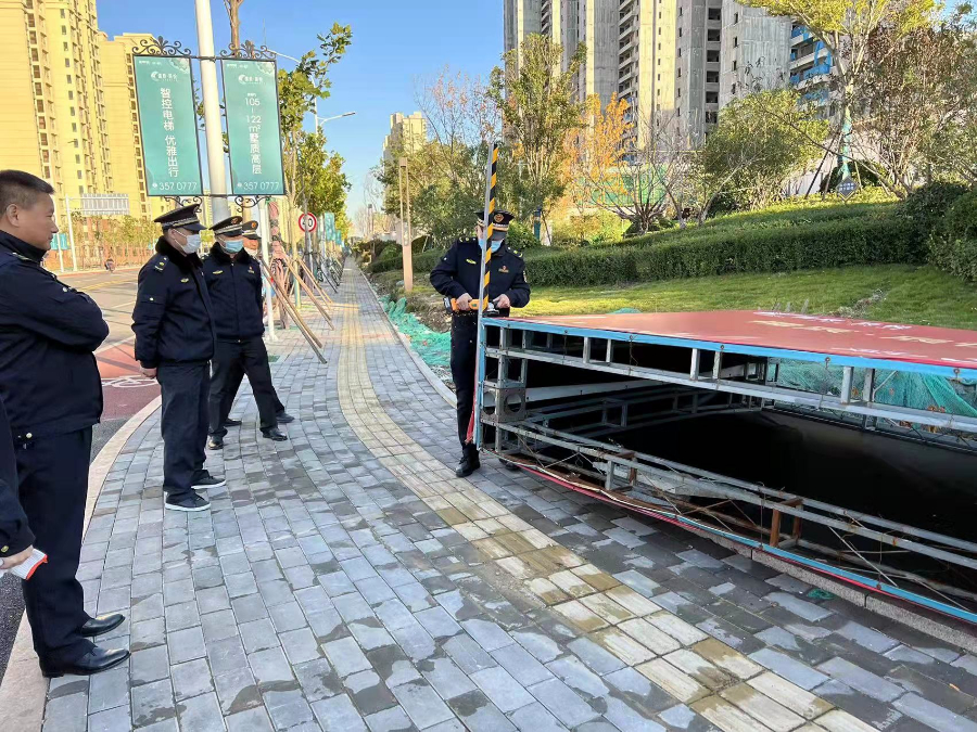 执法队员在巡查中发现,在车站南路与国光路交汇处新设置了一个大型户外落地广告牌,约15平米、占压着人行道,严重侵占了公共空间,违反了城镇容貌和环境卫生管理规定,通过调查了解,是周边建筑工地所设置未办理相关审批手续,大队立即联系到该负责人要求限期拆除,通过对其宣传告知,最后在大队人员的协助下顺利拆除了该处广告牌,切实消除了安全隐患,维护了市容环境秩序。(王胜勇)