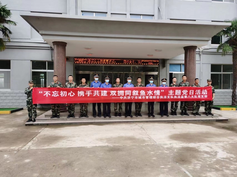 为进一步提升大队凝聚力和向心力,7月29日,执法监察八大队利用休息时间,组织全队党员和执法队员走进武警部队某部,参观军营建设,学习部队作风,开展“不忘初心、携手共建、双拥共叙鱼水情”主题党日活动。